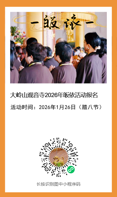 皈依是成为佛弟子的必经之路,是成就无上菩提之根本。为方便善信皈依佛门,听闻正法,如法修行,获福增慧,大岭山观音寺将于2026年1月26日(乙巳年腊月初八)举行皈依法会。